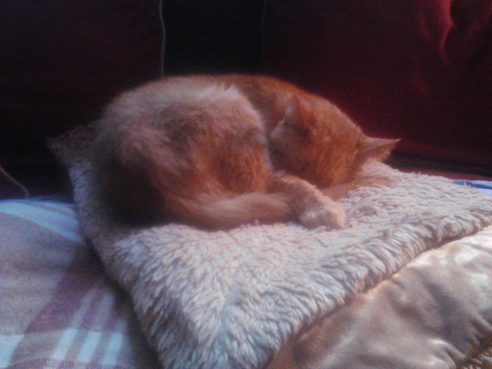 My dear friends across the street have had a miraculous event happen: they've been reunited with their orange tabby cat, Boris, who went missing in December, 2006. He had been staying with another friend while this couple was in Texas following the death of one of their fathers. The day before his favorite mother, D., was to return, Boris disappeared. He had F-I-V, and so we all assumed that when we couldn't find him anywhere, that he'd gone off into some wooded area to die. Instead, he somehow ended up clear on the other side of the city where he's been a loner for the past six-and-a-half years! He was in rough shape, and needed to have all his teeth pulled, but at least he's alive.